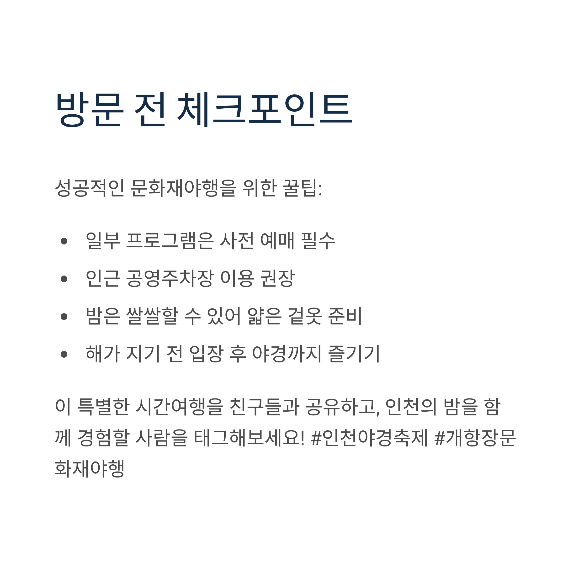 성공적인 문화재야행 참여를 위해 알아두면 좋은 팁들이 있습니다.