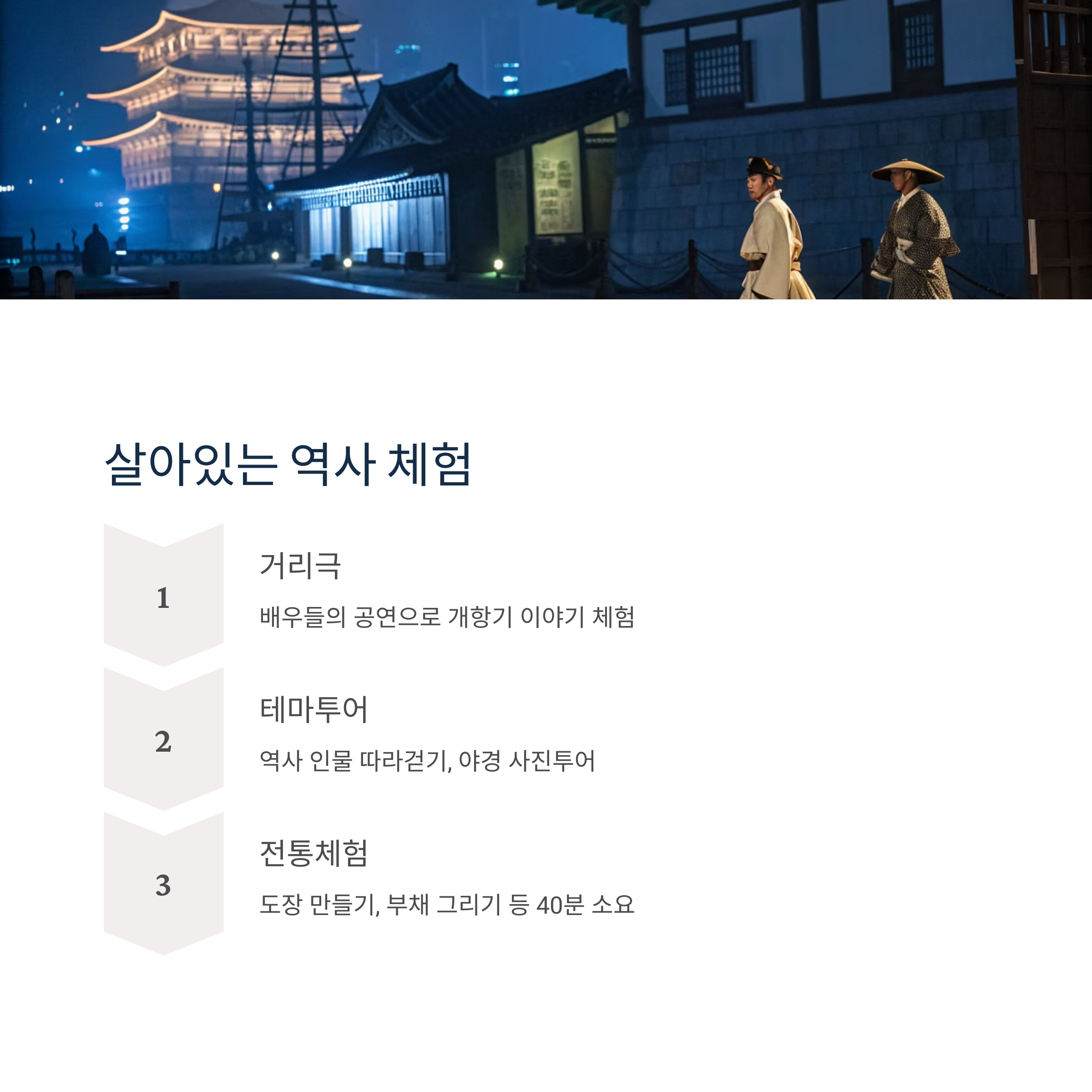 역사 인물 따라 걷기, 야경 사진 투어, 전통공예 체험 등